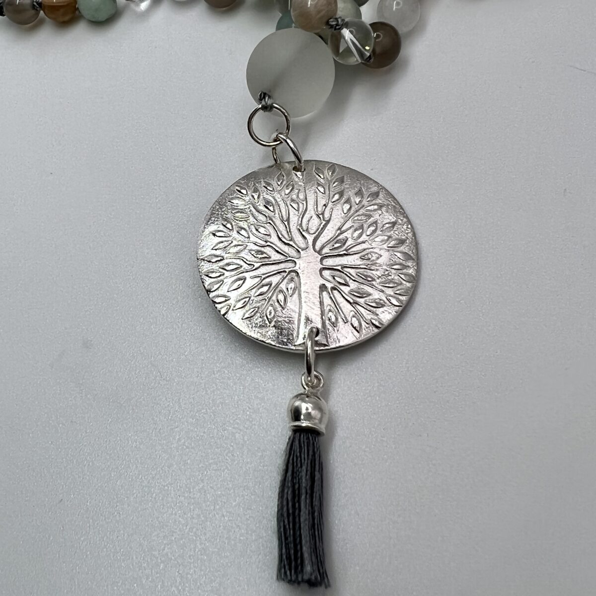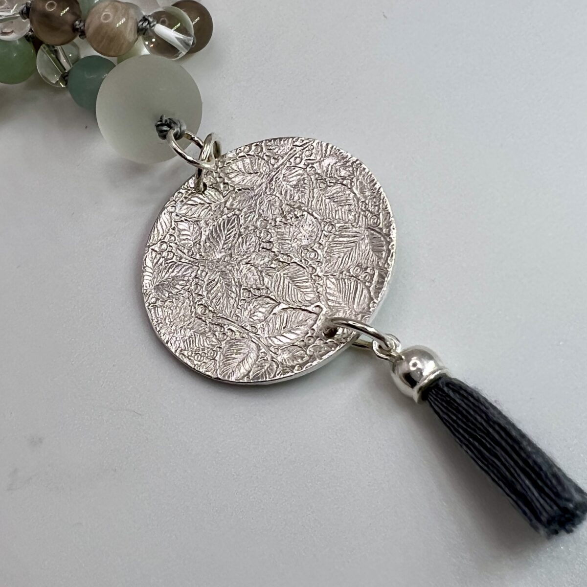 Dieser wunderschöne, handgemachten Anhänger aus Silber wurde liebevoll von Simone Wyss hergestellt. Auf der Rückseite des Malaketten Anhängers hat es ebenfals eine schönes Muster (Bild 2). Den Silberanhänger kannst du an deine Mala Kette machen (mit dem Silberbiegering) oder du kannst den Silberanhänger an einer Silberkette tragen.