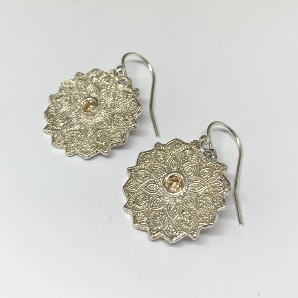 Diese wunderschönen, handgemachten Ohrhänger aus Silber wurden liebevoll von Simone Wyss hergestellt. Die Anhänger mit der filigranen Mandalatextur haben ein Mass von 21 x 21 mm, gemessen ohne Ohrhacken. Die Ohrhacken aus Silber haben eine Länge von 1,7 cm.