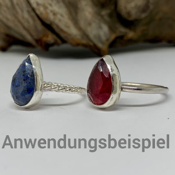 Dieses Blech aus Sterlingsilber eignet sich hervorragend für verschiedene Silberschmiede Arbeiten. Ich nutze es oft um Fassungen für Cabochon Steine zumachen zusammen mit dem Feinsilberflachdraht. Das Blech ist mit 0,5mm stabil und lässt sich doch noch mit einer guten Schere schneiden.